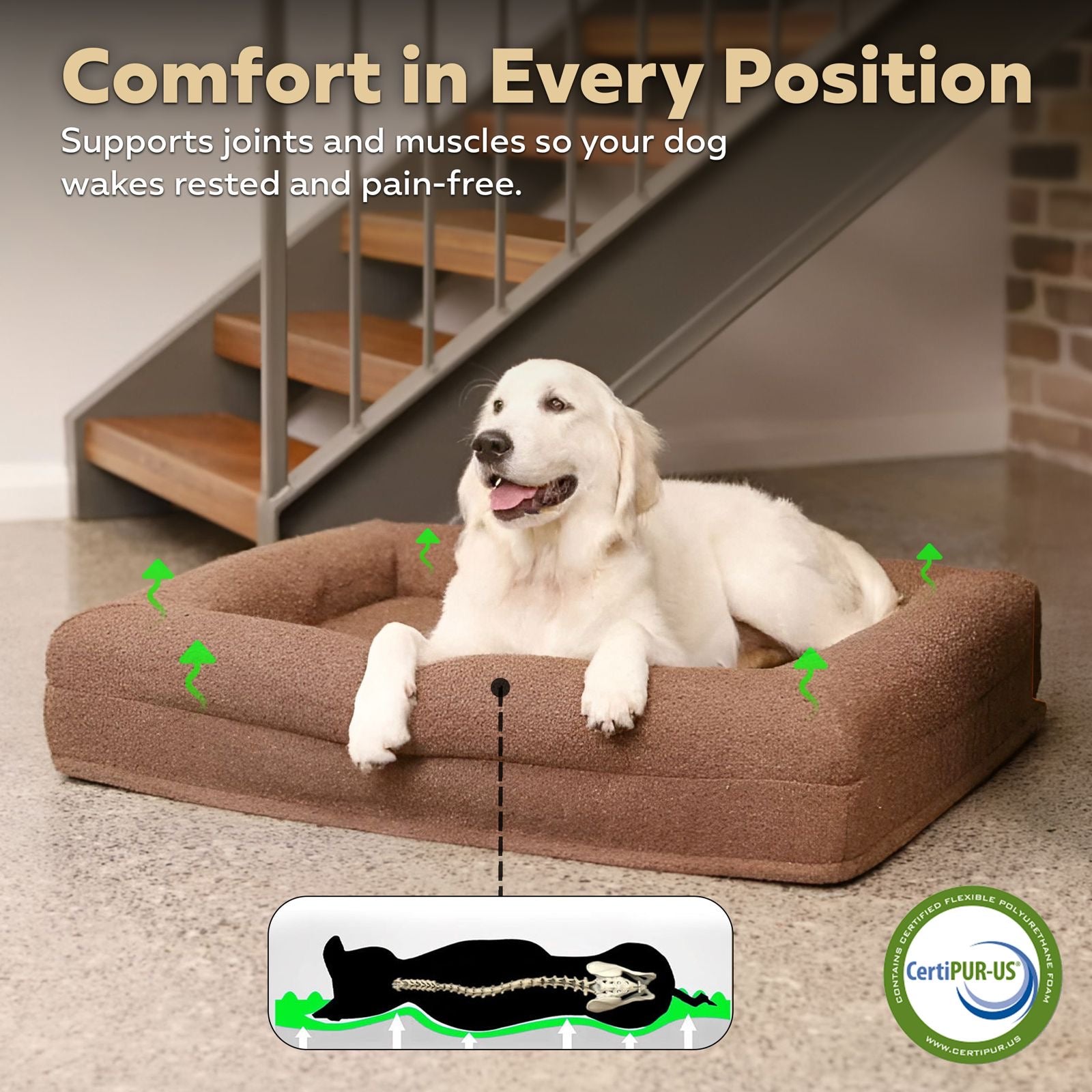 Firm Memory Foam Dog Bed In Brown Boucle Fabric - Medium