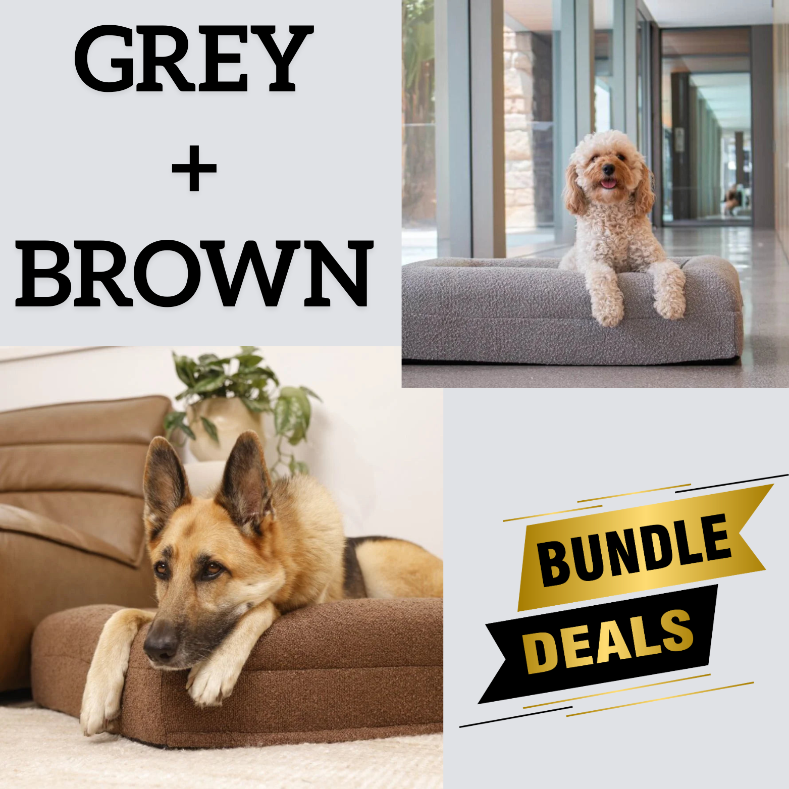 Bundle - 1 X Brown & 1 X Grey Boucle Fabric & Orthopaedic Foam Dog Beds